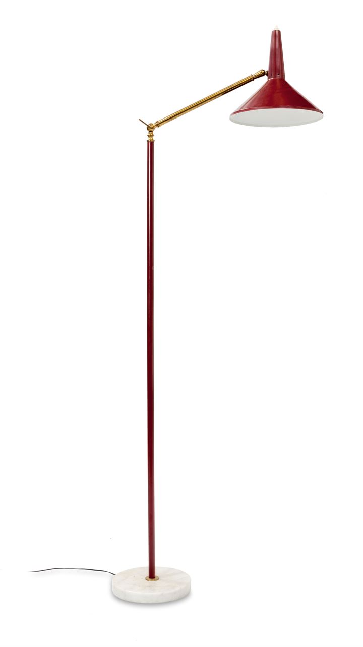 STILNOVO Lampada da terra con braccio a snodo in ottone e metallo laccato....