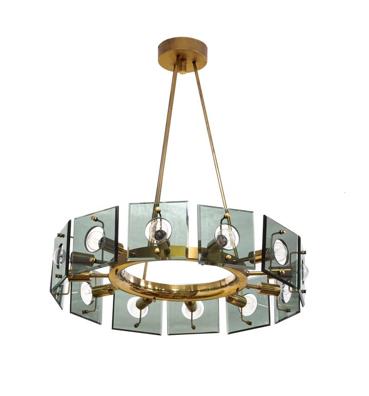 PRODUZIONE ITALIANA Lampada a sospensione con struttura in ottone lucidato e...