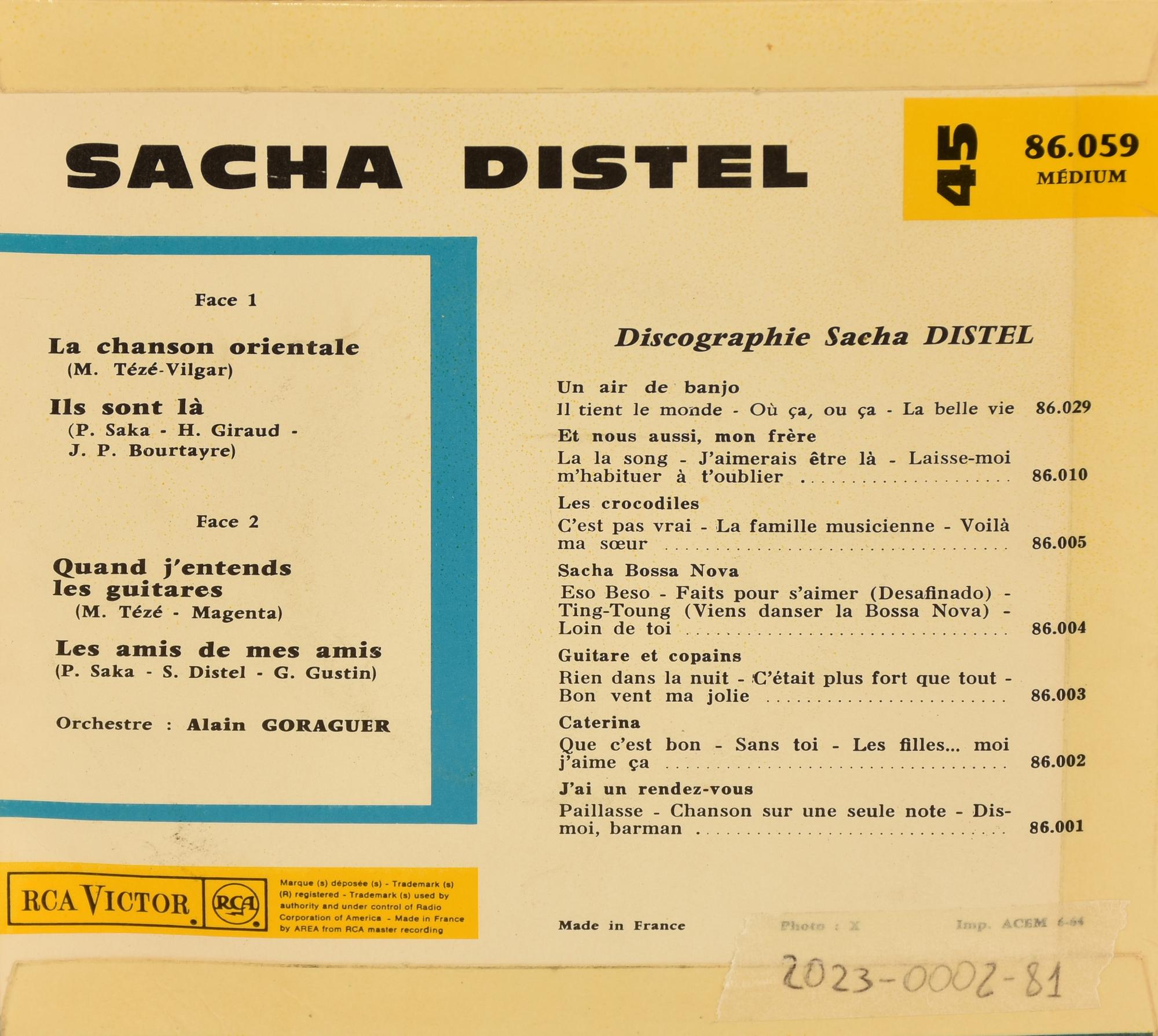 EP 45 GIRI Sacha Distel , - La chanson orientale - ils sont la' - Quand...