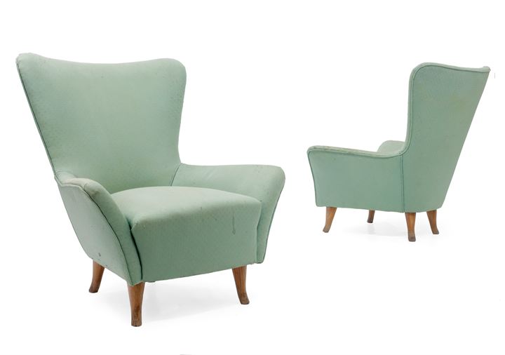 I.S.A Coppia di poltrone con struttura in legno e imbottitura rivestita in...