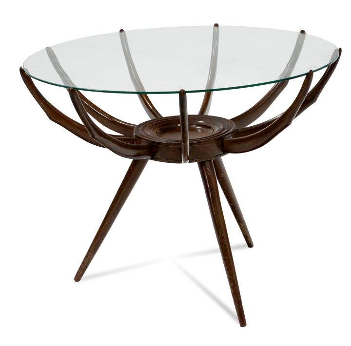 DE CARLI CARLO Tavolino da salotto in legno con piano in cristallo molato....