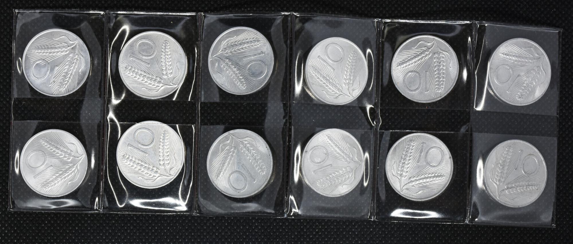 LOTTO DI 12 MONETE REPUBBLICA ITALIANA da 10 lire 1967