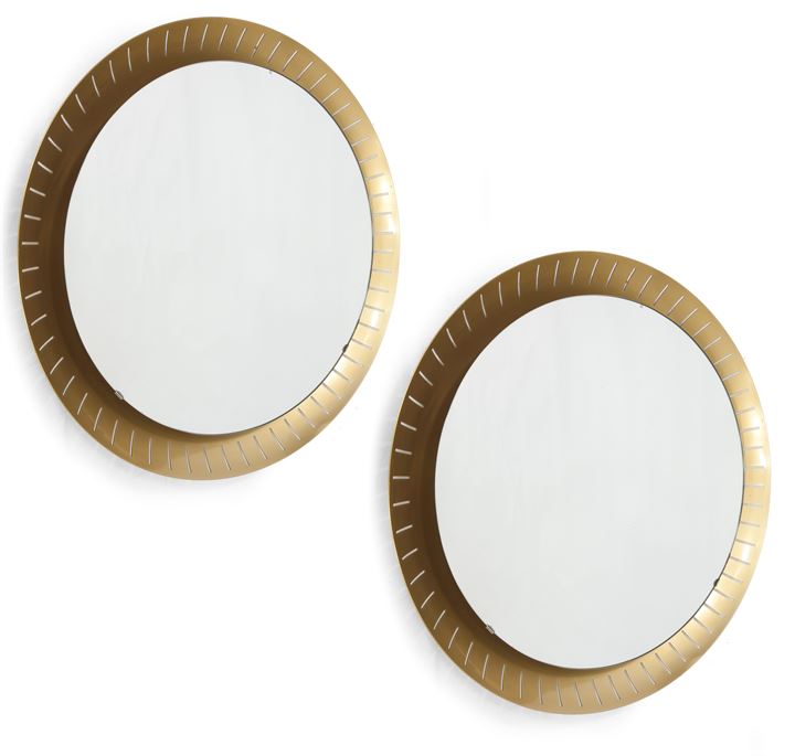 Coppia di specchiere retroilluminate in alluminio anodizzato, vetro specchiato molato.