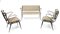 Salotto composto da divano e due poltrone. Struttura in metallo laccato e imbottitura in skai.