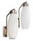 Coppia di grandi lampade a parete in ottone nichelato e vetro opalino satinato.