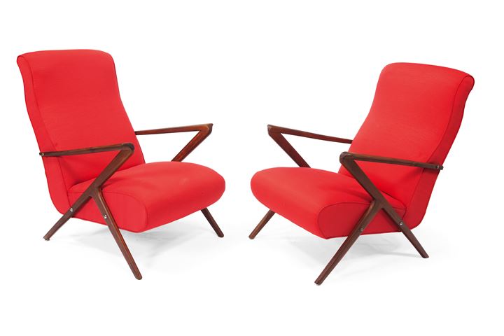 PRODUZIONE ITALIANA Coppia di poltrone con struttura in legno di mogano e...