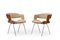 Coppia di poltroncine con struttura in legno curvato e rivestimento in tessuto imbottito.