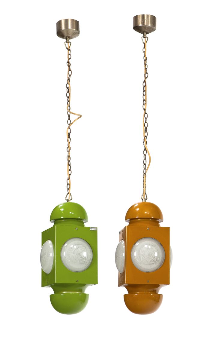 LUCI Due lanterne in metallo laccato e lenti in vetro. Prod. Luci anni '70 h...