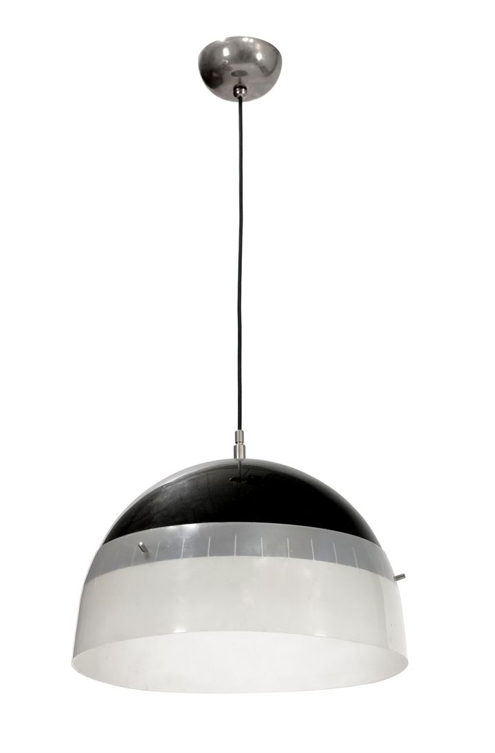 OSTUNI GIUSEPPE Lampada a sospensione in acciaio e cupola in perspex. Prod....