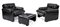 Coppia di poltrone con pouf in pelle con imbottitura in pelle.