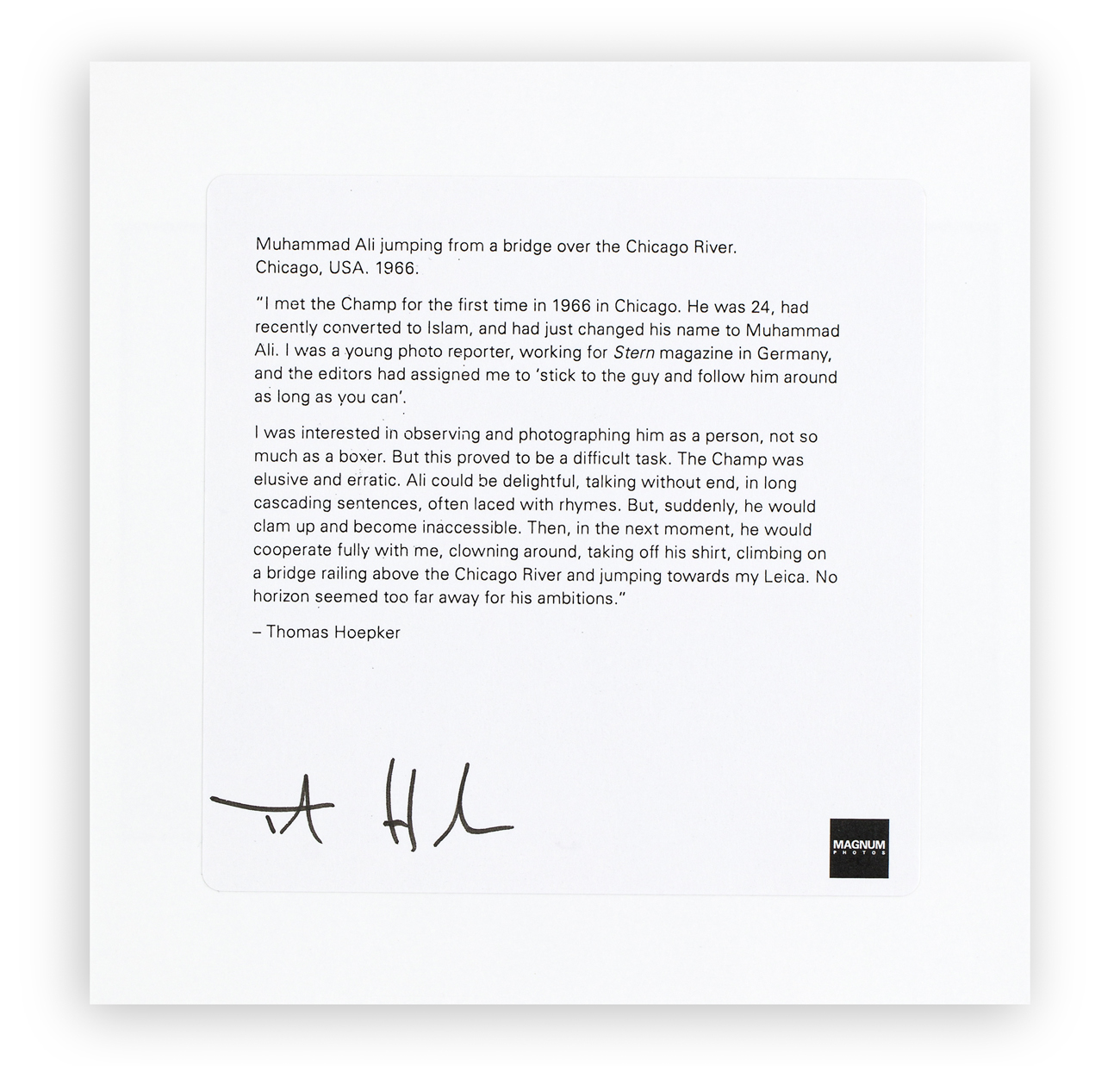 THOMAS HOPEKER (1936) - Muhammad Ali jumping from a bridge over the Chicago River