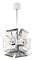 Lampada a sospensione a cinque luci in metallo cromato e laccato bianco.
