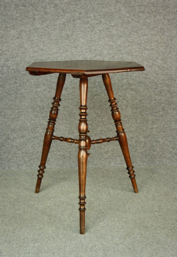 Tavolino con piano esagonale e gambe tornite. Inizi XX secolo. Mis. Lung. cm. 54 Alt. cm. 74 Prof. cm. 54 ca.
