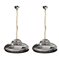 Coppia di lampade a sospensione in alluminio laccato a luce indiretta.