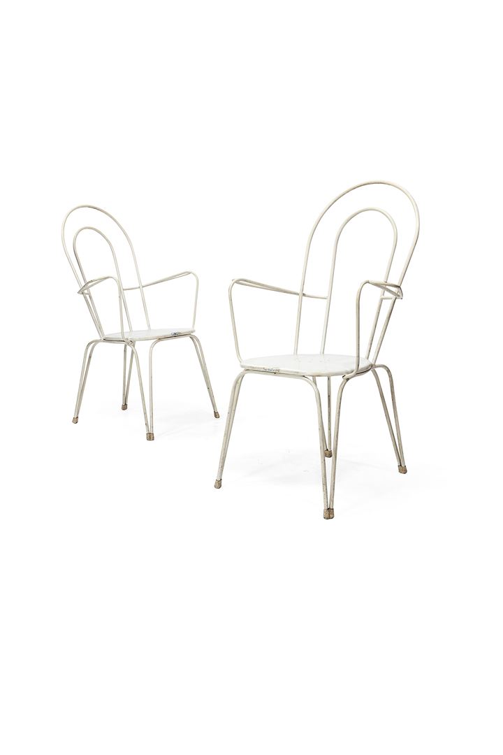 PRODUZIONE ITALIANA Due sedie da esterno in metallo laccato bianco. Anni '70...