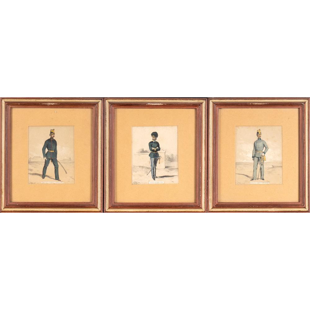 Lotto 53 | Lotto di tre stampe acquarellate raffiguranti militari in uniforme