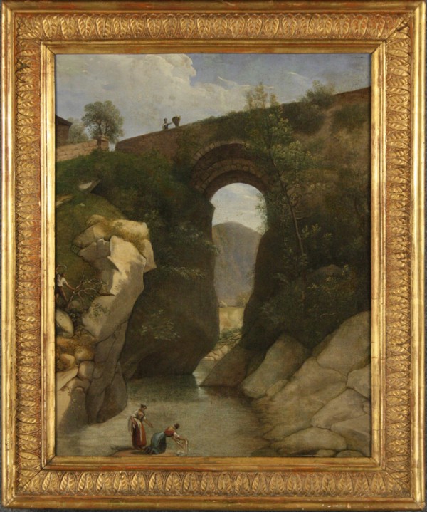 Firmato, datato. Dipinto olio su tela raff. ''L'ORRIDO DI BELLANO''. Fine XVIII secolo. Restauri e rintelo. In cornice. Mis. Lung. cm. 61 Alt. cm. 75 ca.