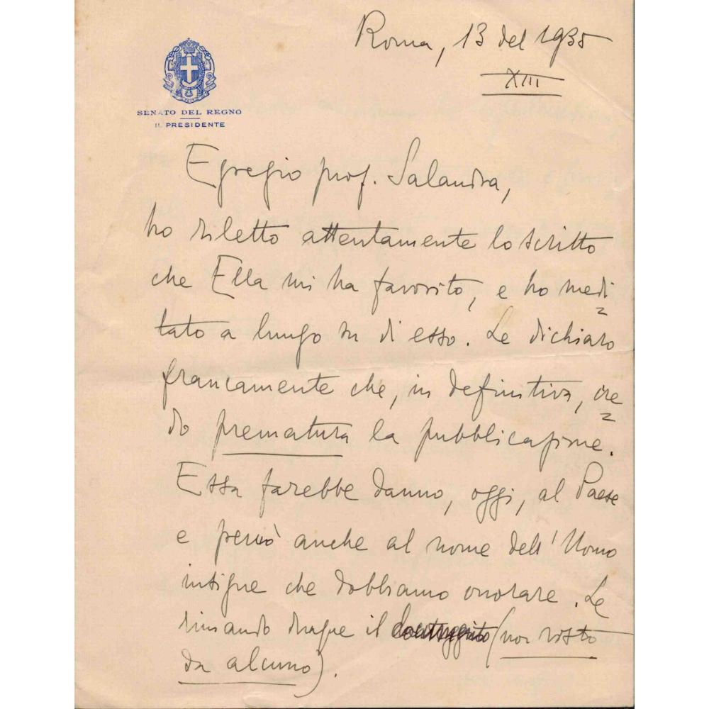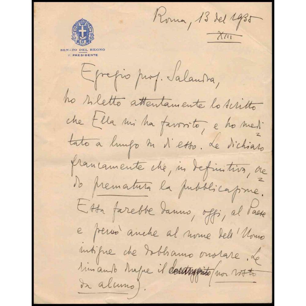 Lotto 107 | Lettera autografa di Luigi Federzoni, presidente del Senato del Regno e Ministr Miscellanea...
