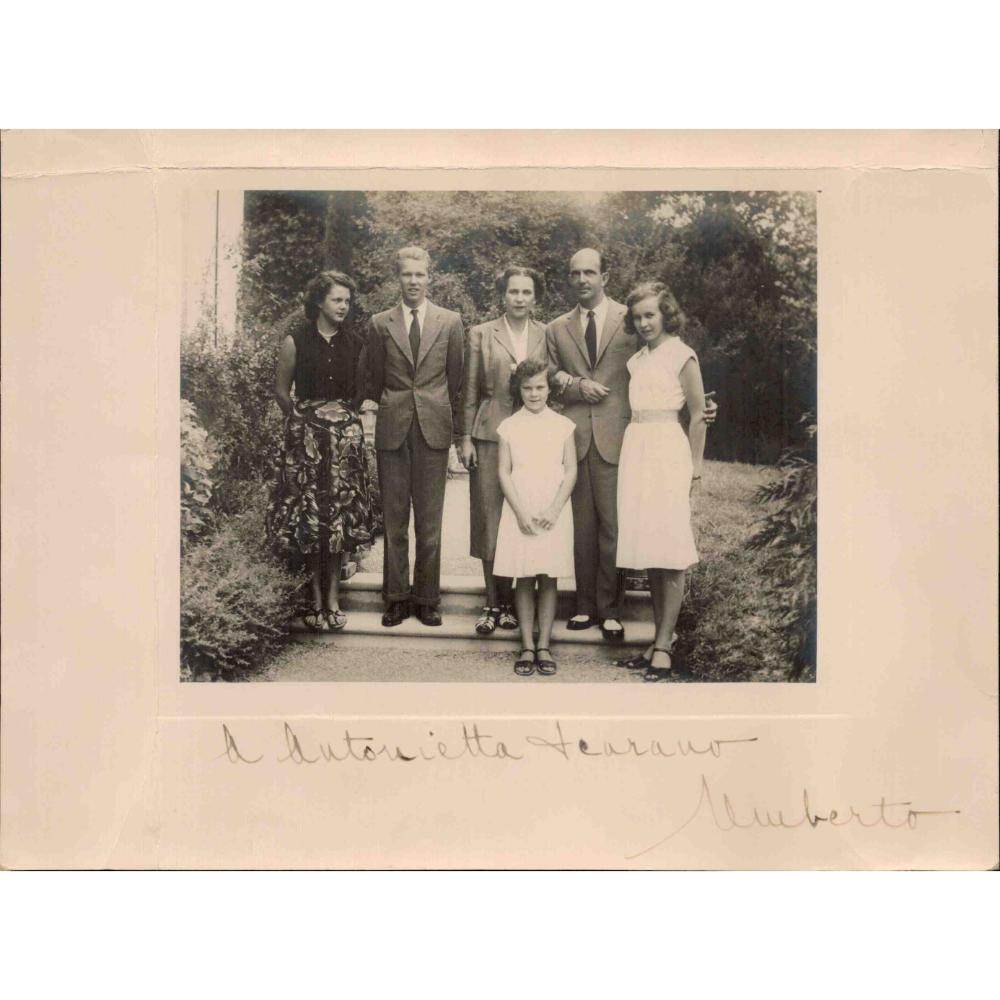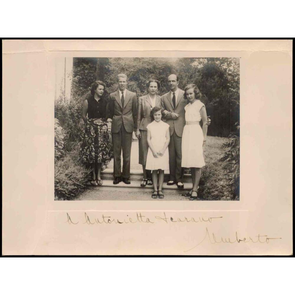 Foto con dedica di Umberto II con famiglia Casa Savoia e corti europee...