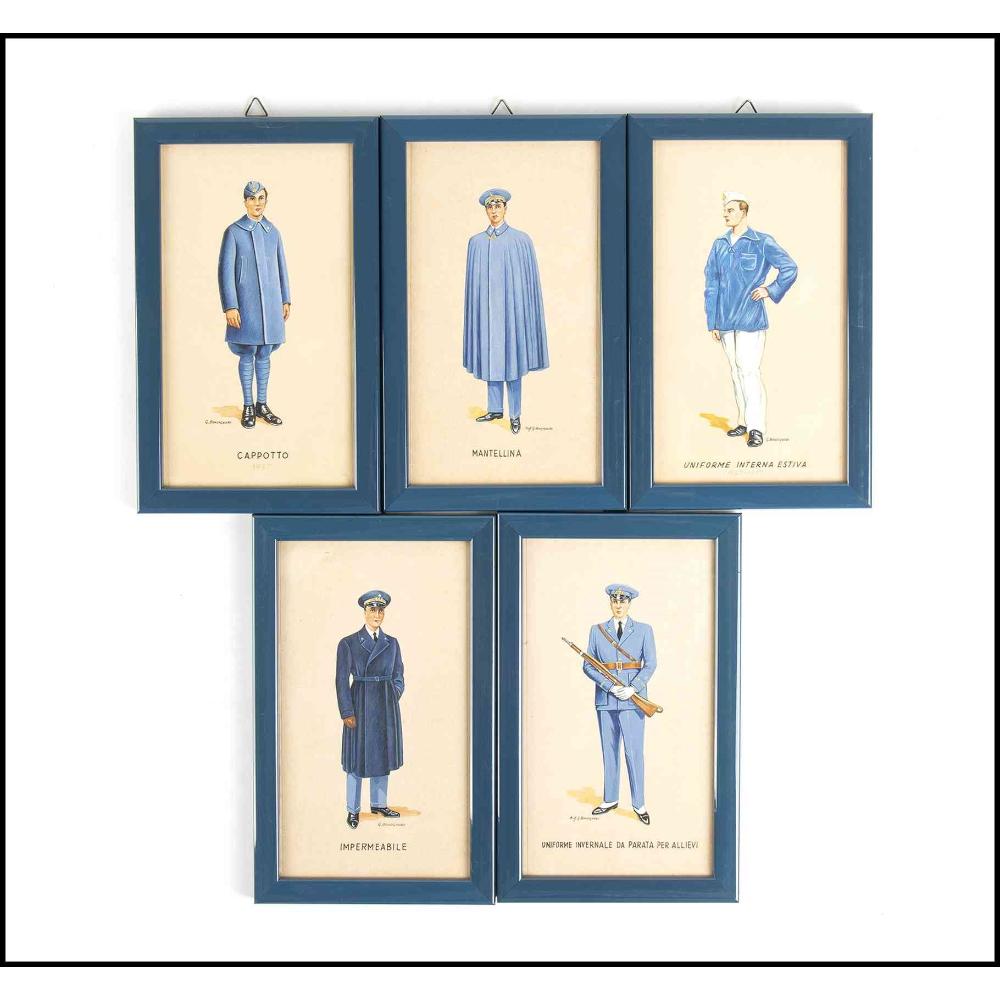 Lotto 138 | Lotto di 5 rappresentazioni di uniformi di Regia Aeronautica Militaria...