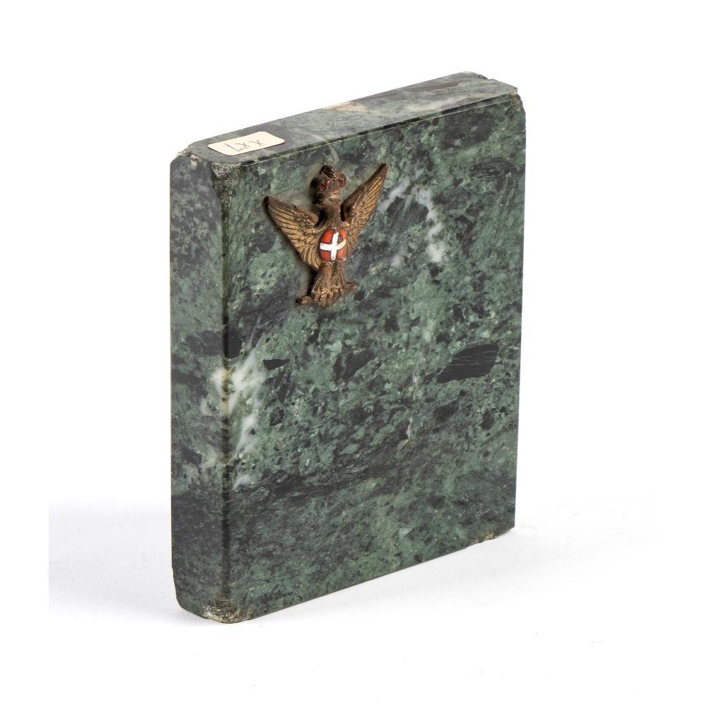 Fremacarte decorato con distintivo della Scuola di Stato Maggiore Re Militaria...