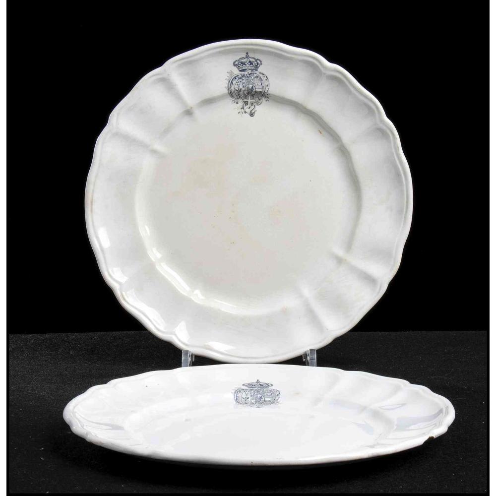 Coppia di piatti Richard con stemma araldico Casa Savoia e corti europee...