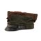 in lana grigio verde, filettature rosse, bel fregio di lana nero con croce al tondo, visiera di cuoio bordata, marchi all’interno, buono stato