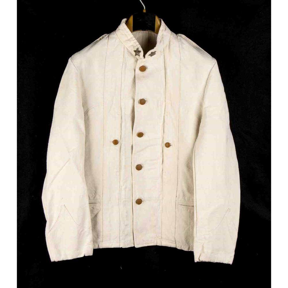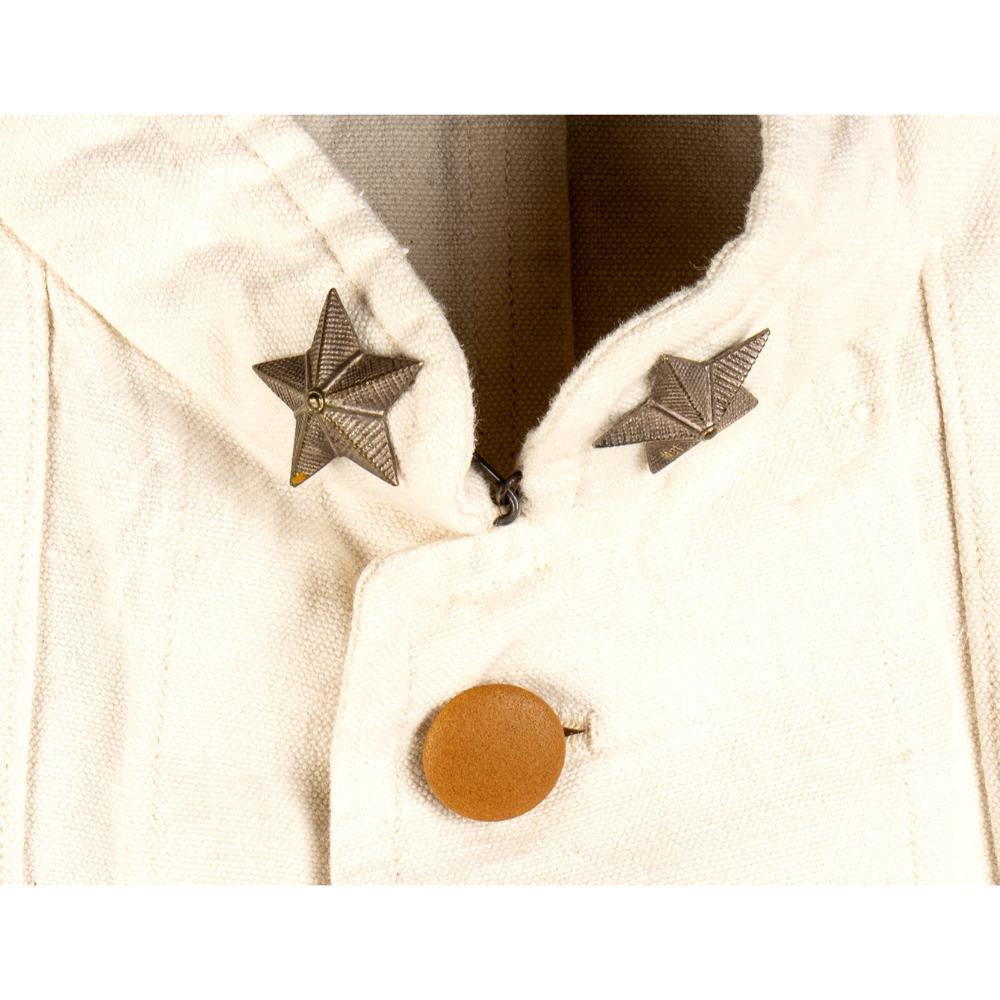 in tela di cotone naturale con stellette al bavero e gradi alle controspalline, in ottimo stato