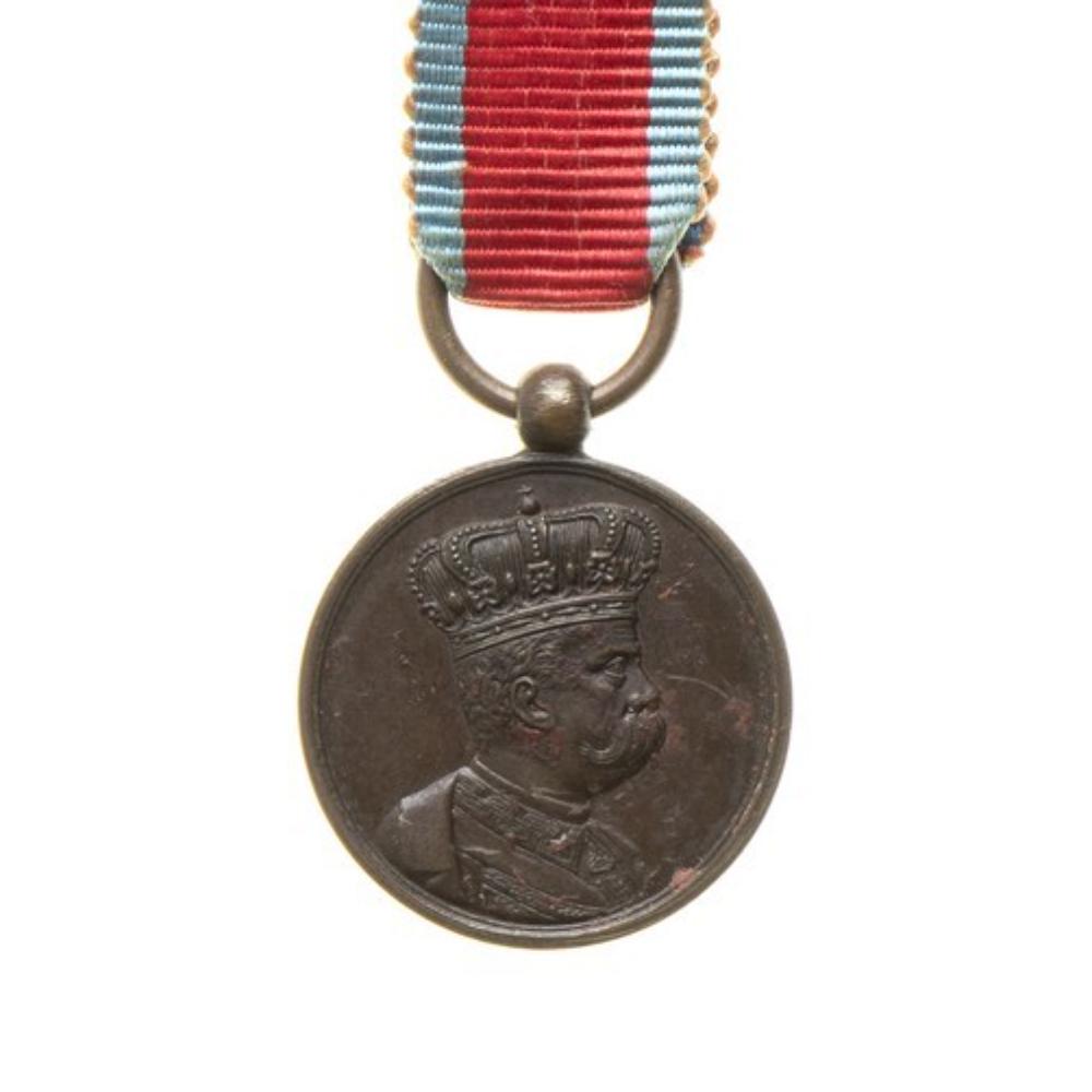 BRONZO, 17 MM MINIATURA DELLA MEDAGLIA DELLE CAMPAGNE D’AFRICA, EPOCA UMBERTO I, NASTRO ORIGINALE