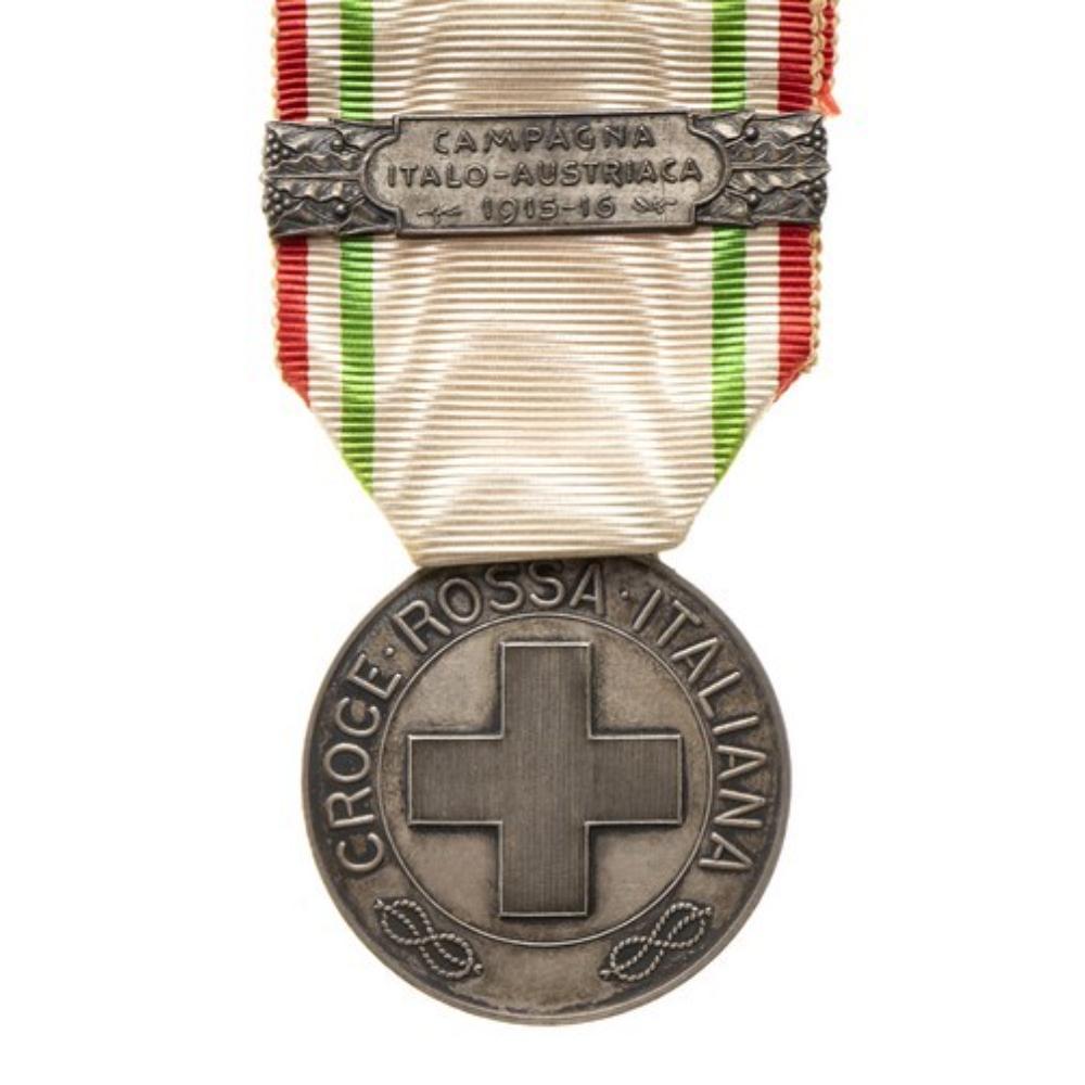 ARGENTO, 34 MM BELLISSIMA MEDAGLIA DI BENEMERENZA IN ARGENTO CONCESSA IN OCCASIONE DELLA CAMPAGNA ITALO-AUSTRIACA, CAMBRETTA TONDA, NASTRO DI SETA ORIGINALE CON BARRETTA, FIOR DI CONIO, BELLA PATINA