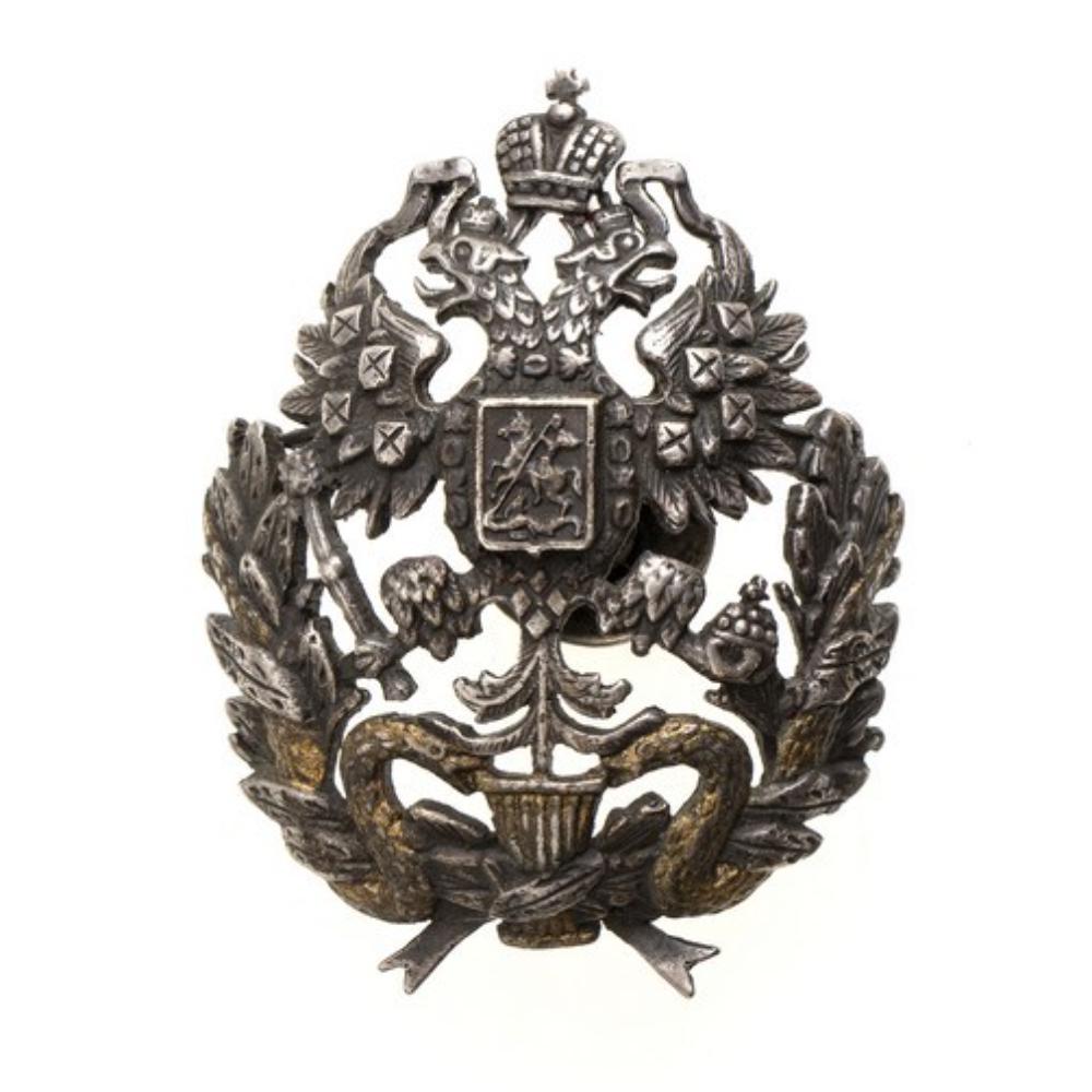 DISTINTIVO DA UFFICIALE MEDICO DELL’ACCADEMIA IMPERIALE ORDINI E MEDAGLIE - RUSSIA, IMPERO... ARGENTO, 41,5X54,5 mm
