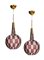 Due lampade a sospensione in ottone, vetro soffiato di Barovier & Toso trattato all'acido.