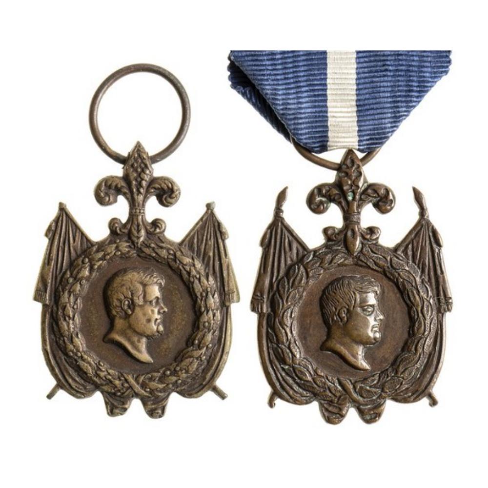 BRONZO, 40X29 MM coniata per premiare i militari che avevano partecipato alla Campagna di Sicilia del 1849, UNA DELLE DUE MANCANTE DELLE PUNTE DELLE LANCE, UNA CON LANCE E NASTRINO APPARENTEMENTE COEVO.