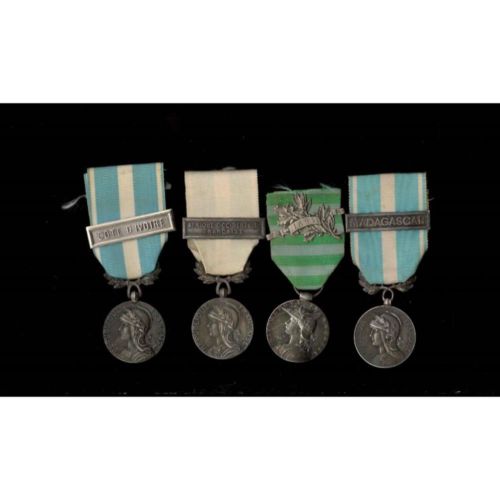 Lotto di 4 medaglie coloniali Francia, III Reppublica...