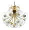 Lampada a sospensione con struttura in ottone e metallo laccato bianco cristallo curvato molato.