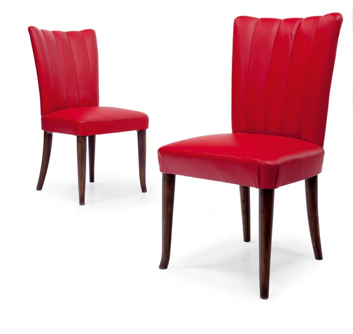 BORSANI OSVALDO Due sedie con struttura in legno e imbottitura in pelle....
