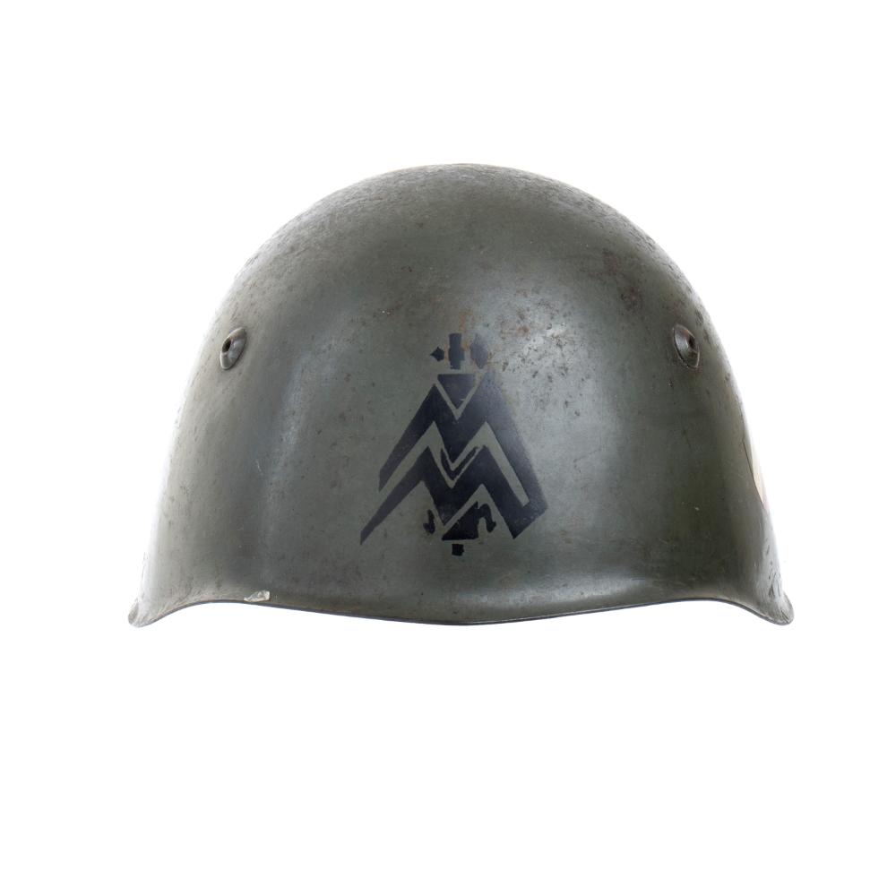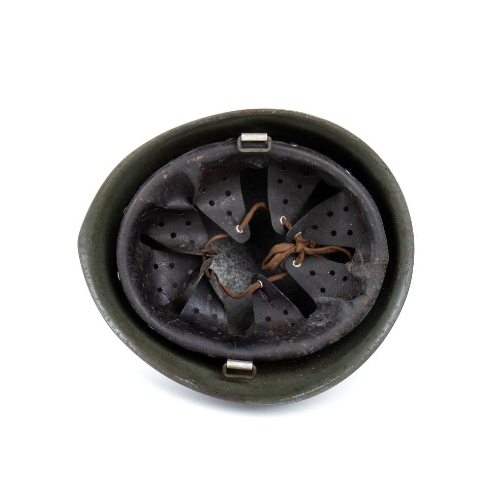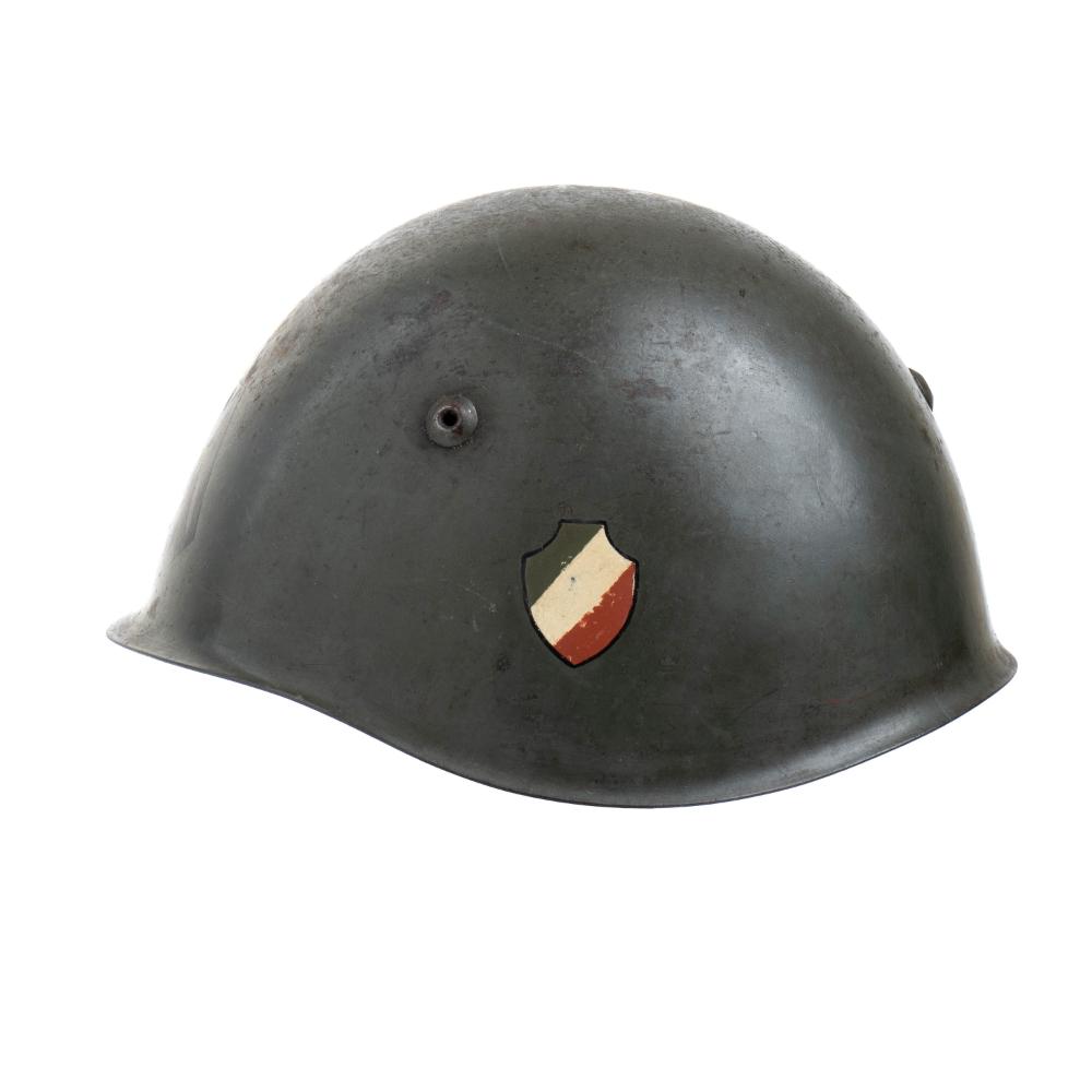Bellissimo elmo m. 1933 con fregio frontale di M saettante caricate di fascio e scudetto laterale, senza soggolo, molto bello ed in ottimo stato