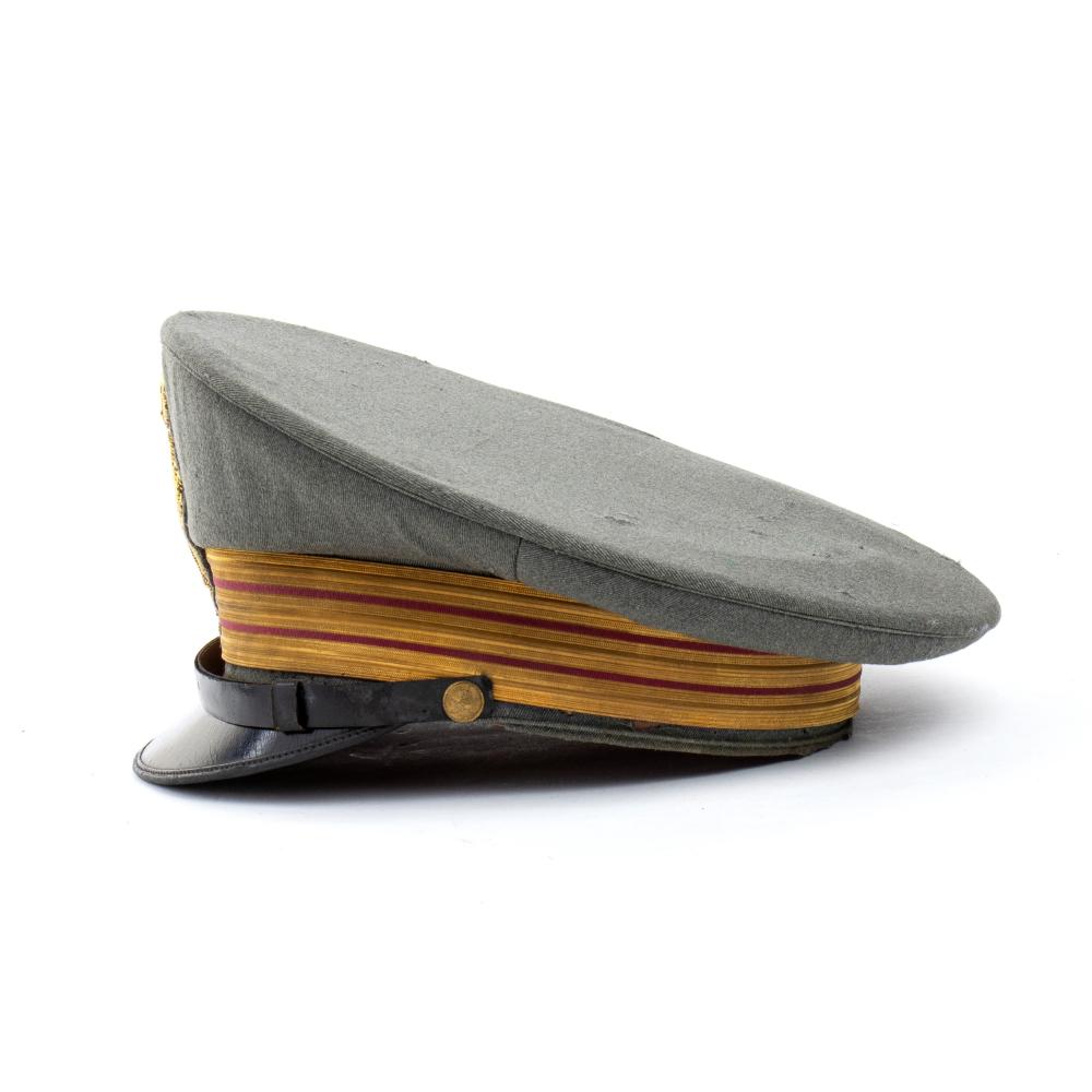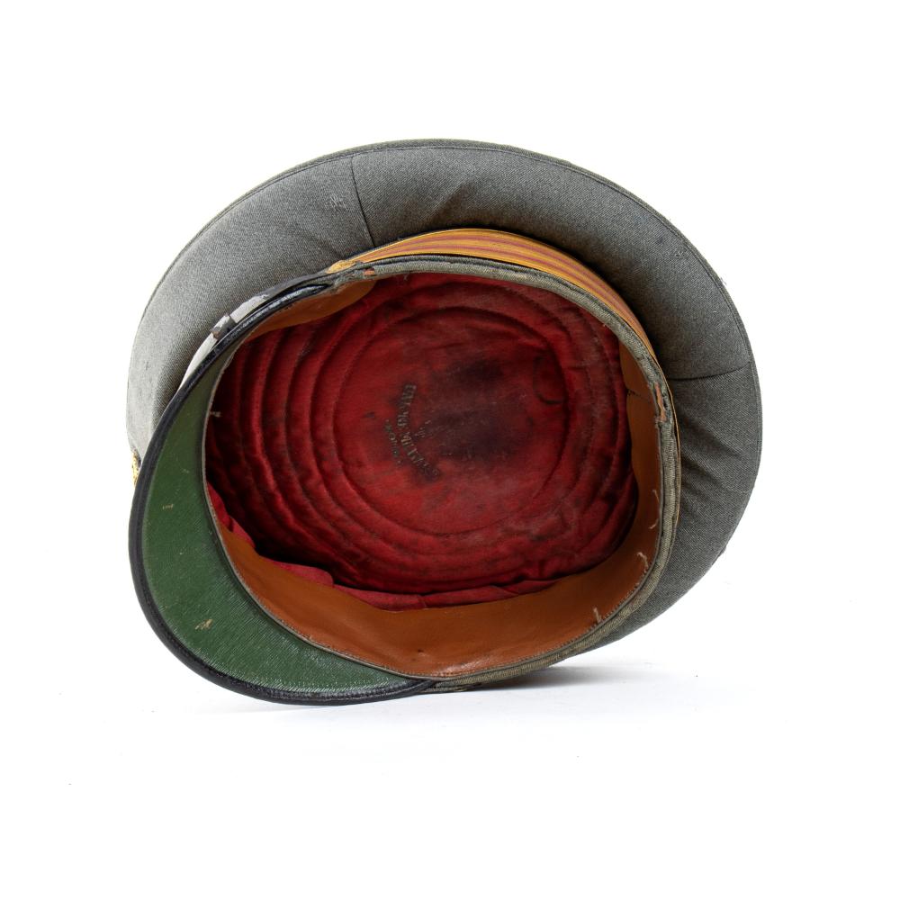 gabardina grigio verde, gradi dorati filettati di amaranto, colore di specialità, bel fregio caricato al centro di croce rossa su fondo di panno bianco, bottoni al soggolo di sanità, interno di seta con marchio del fabbricante, ottimo stato, molto raro.