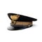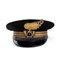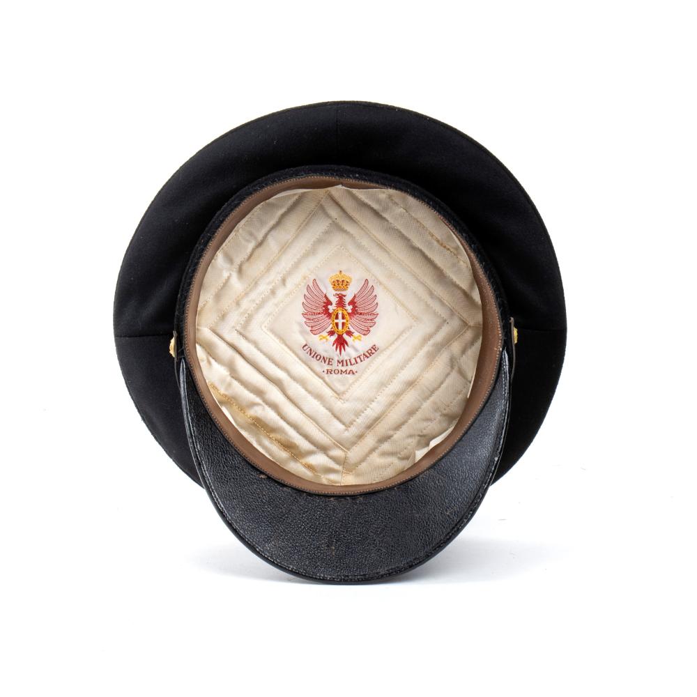 bellissimo berretto in castorino di lana nero, grande fregio in canottiglia dorata, interno con marchi del fabbricante, in ottimo stato