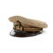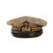tamburo in panno di lana blu scuro, telino di cotone caki, visiera marrone,fregio in canottiglia dorata e gradi a lastra, all'interno fodera con marchi del fabbricante