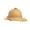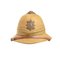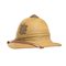 bel casco in feltro ricoperto di tela di cotone caki con fregio frontale metallico, ottimo stato