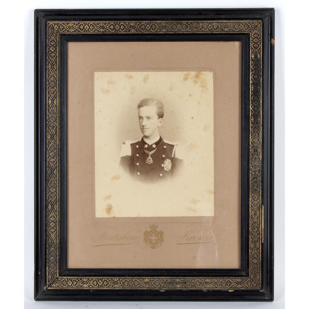 fotografia Fotografia montata su cartone di Vittorio Emanuele, all'epoca Principe ereditario, in uniforme della Nunziatella, cornice coeva