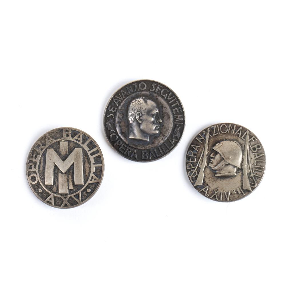 3 MEDAGLIONI FERMAFAZZOLETTI CAMPI DUX prima metà XX sec.