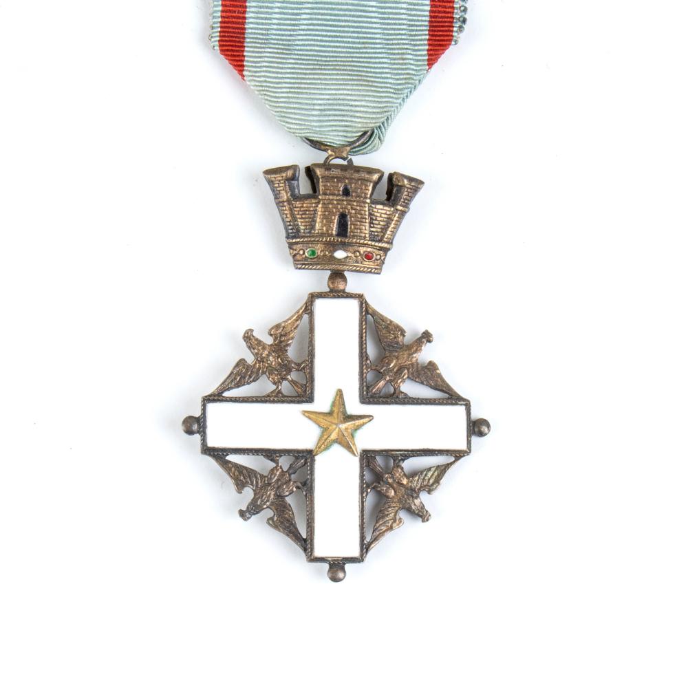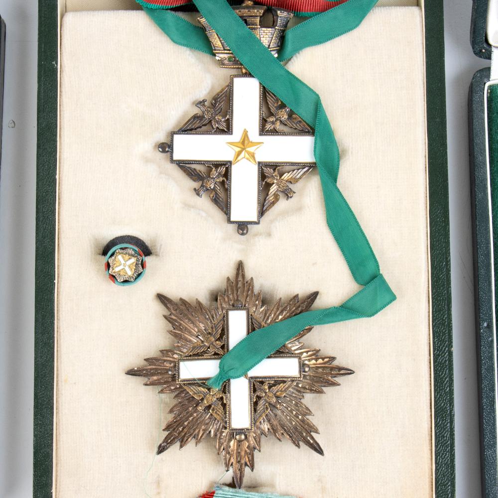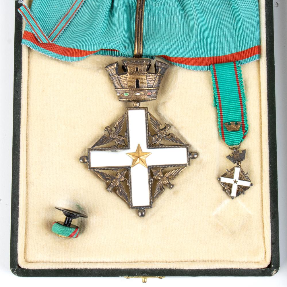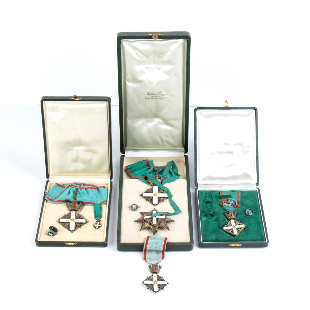 Lotto composto da una insegna di grand'ufficiale, una di commendatore, un cavaliere ufficiale , tutte in scatola ed un cavaliere senza astuccio, buone condizioni, argento e smalti, nastri originali, al cavaliere ufficiale manca la miniatura.