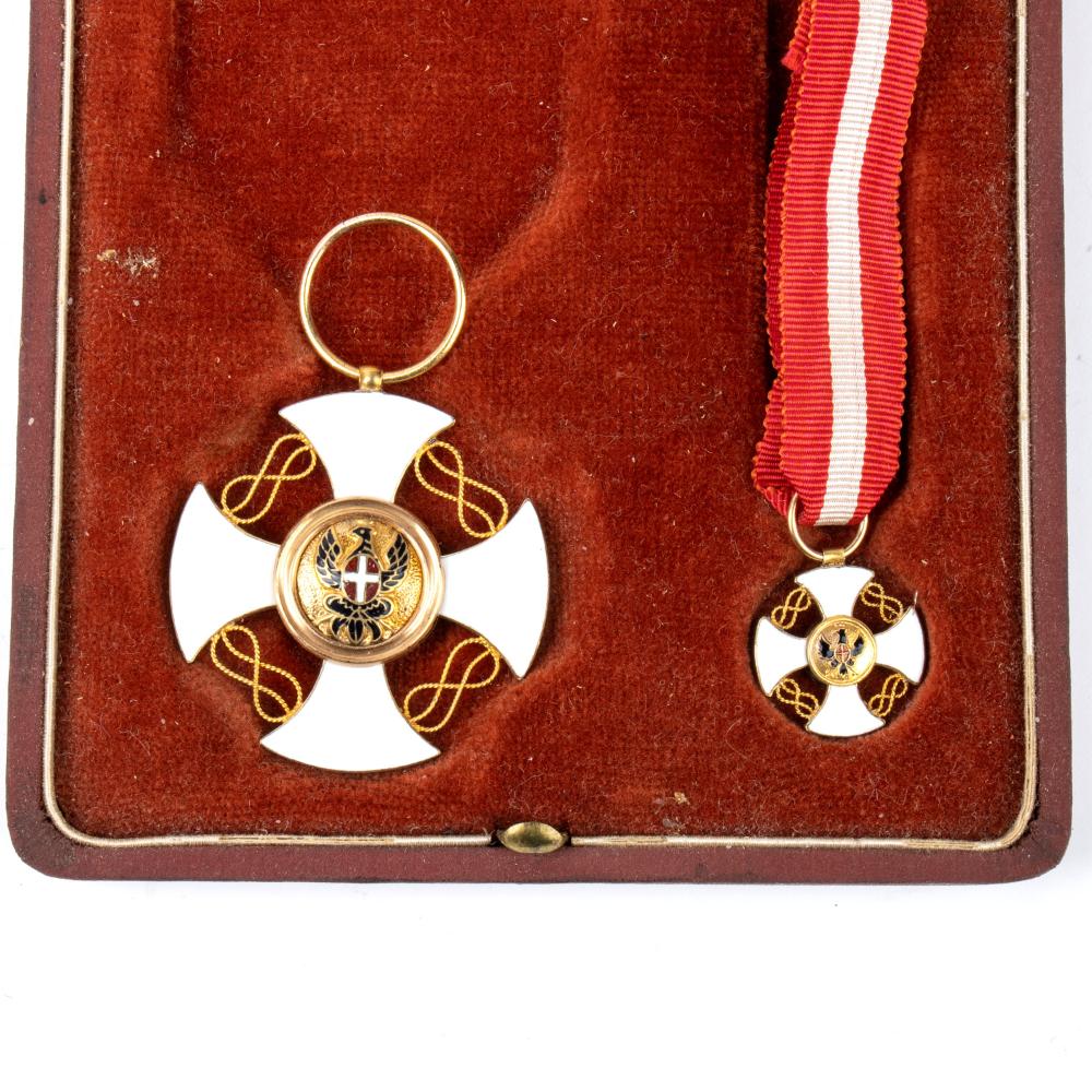 di ottima fattura, miniatura da cavaliere ufficiale, e decoreazione principale senza nastro, in astuccio, gioielleria barraia