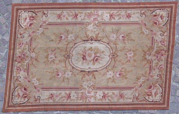 Tappeto Aubusson in tessuto. Inizi XX secolo. Mis. Lung. cm. 113 Alt. cm. 173...