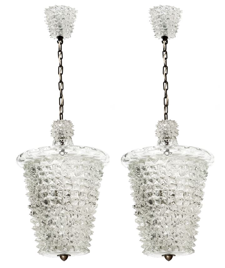 BAROVIER ERCOLE Coppia di lampade a sospensione con coppe in vetro rostrato....