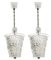Coppia di lampade a sospensione con coppe in vetro rostrato.
