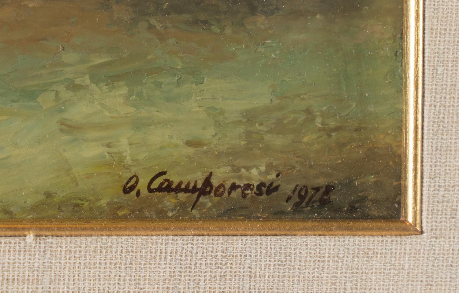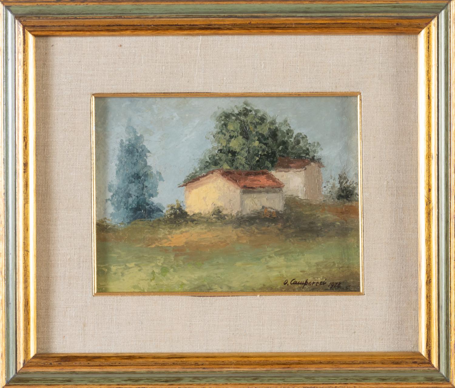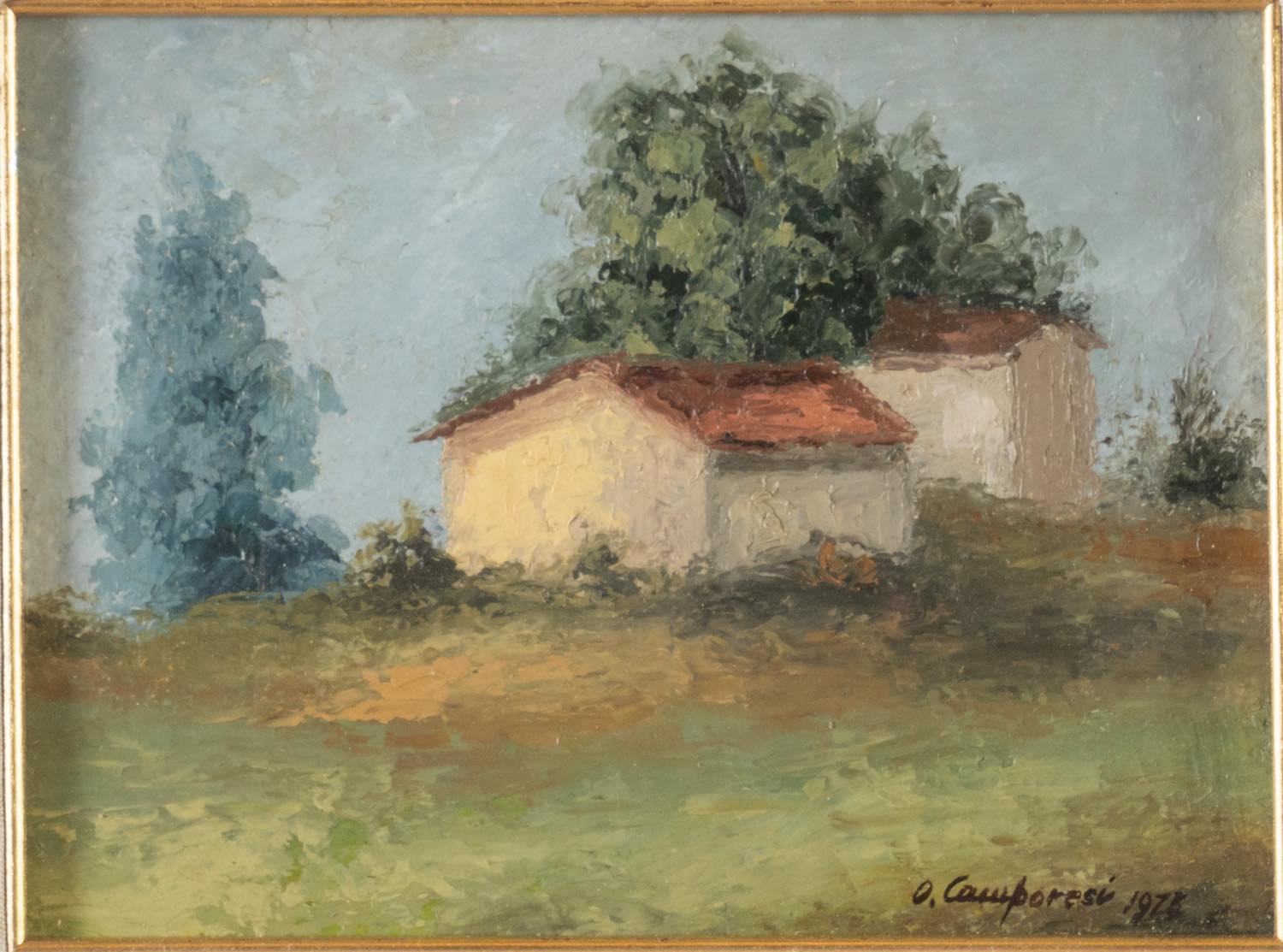 Oliviero Camporesi (XIX – XX secolo), “Paesaggio con casolare”, 1973.