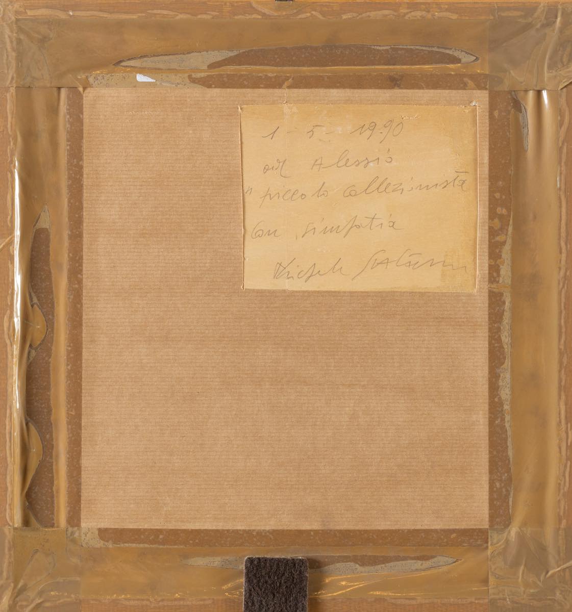 Olio su tavoletta, firmato in basso al centro, reca al retro dedica dell’artista datata 1990, H cm 26.5x25